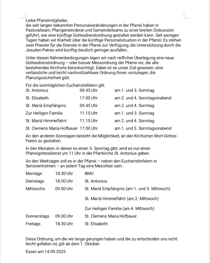 in St. Elisabeth meint nicht nur die „normalen“ Eucharistiefeiern wie Hochämter, Werktags-Messen, Vorabendmessen (VAM), Andachten, Wortgottesdienste usw., sondern zukünftig auch alle alternativen Formen der Messgestaltung.