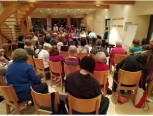 Der Bus, bis auf den letzten Platz besetzt, schlängelt sich die letzten Kilometer professionell durch die Serpentinen des Westerwaldes zum Tagungshaus Marienberge. Die PKW Fahrer sind schon vor Ort, als wir unser Ziel erreichen.