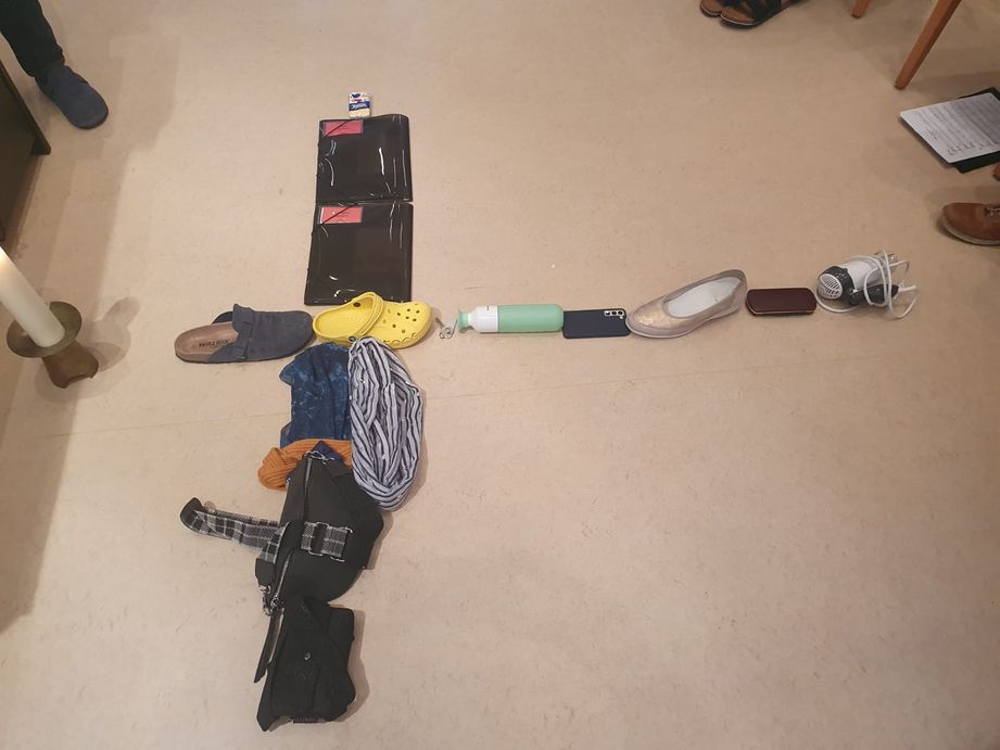 Den Sonntag beginnen wir nach reichhaltigem Frühstück mit einem Gottesdienst. Ein spontan mit persönlichen Gegenständen gestaltetes Kreuz bildet die Mitte. Wir teilen unsere Gedanken zum Evangelium und nehmen Menschen, die uns am Herzen liegen, mit in unsere Gemeinschaft und unser Gebet.